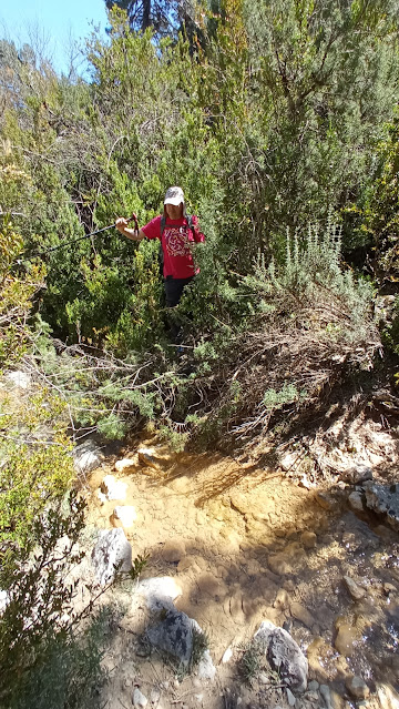 En la RUTA Nº 6 de la GUÍA [30 RUTAS IMPRESCINDIBLES] está descrita, ahora que he vuelto sobre el terreno he desactivado el enlace al track, ha cambiado tanto el entorno que de DIFÍCIL pasa a ser SÓLO EXPERTOS, por lo tanto no aconsejo acometer la ruta si no estás acostumbrado a caminar por la montaña y orientarte con los medios disponibles, evitar el uso de móviles (GPS de campo o mapa y brújula), el medio natural es un elemento vivo y cambiante, en esta ocasión un tupido tapiz vegetal de zarzas, romeros, enebros y sabinas hacen que pierdas con facilidad el sendero engullido por la vegetación, a esto se le une la progresión lenta y los pasos expuestos o llenos de zarzas en los vadeos de arroyos.